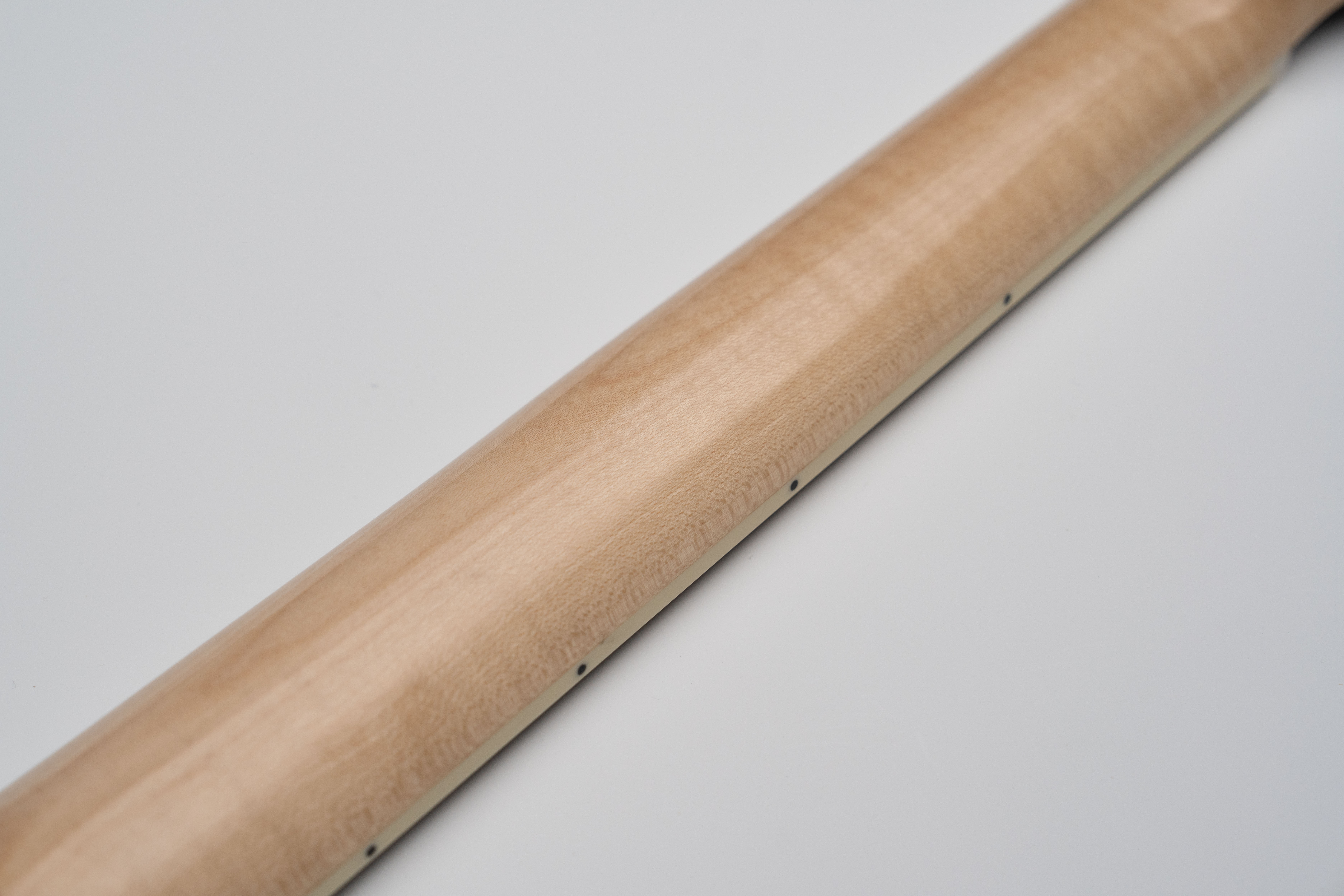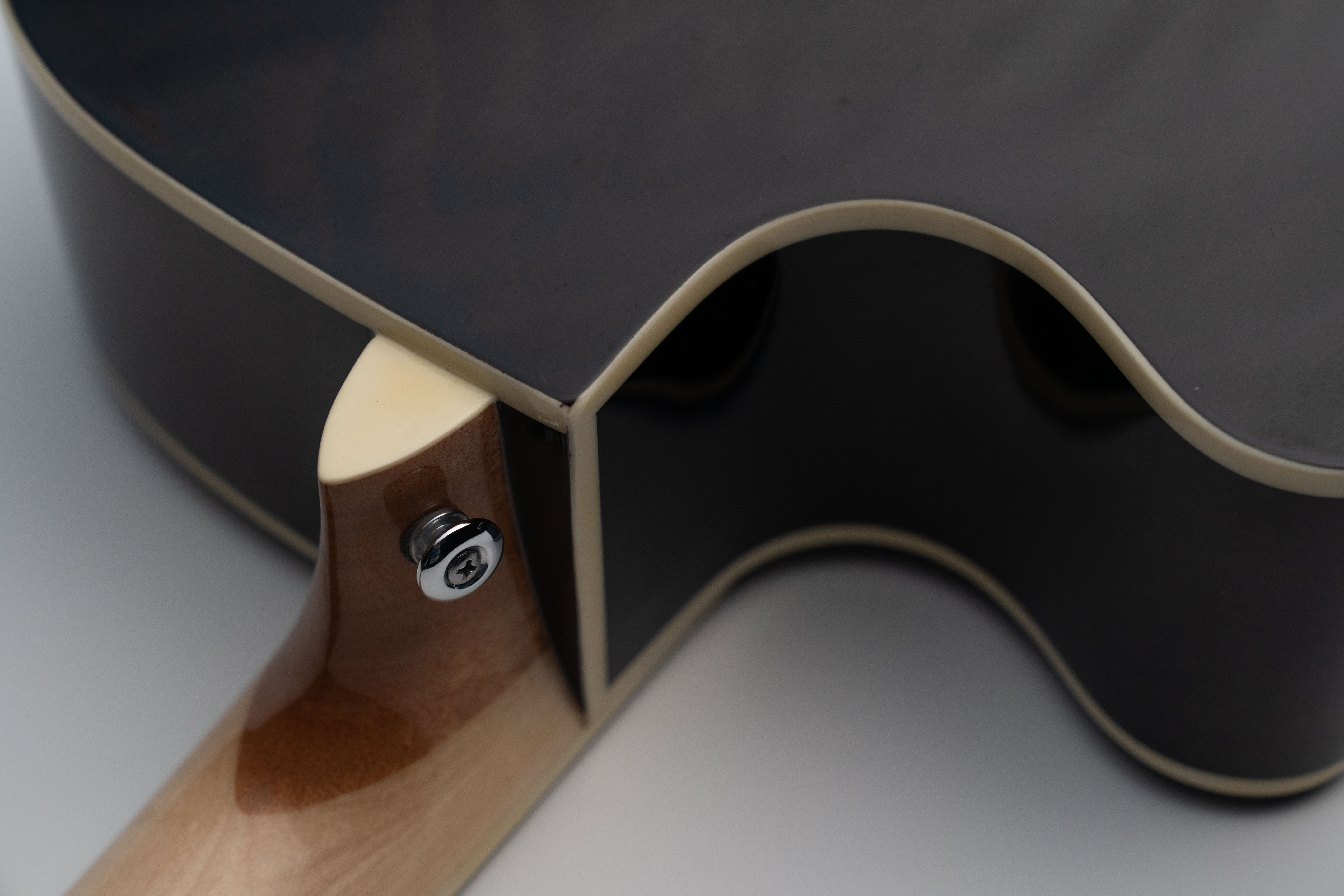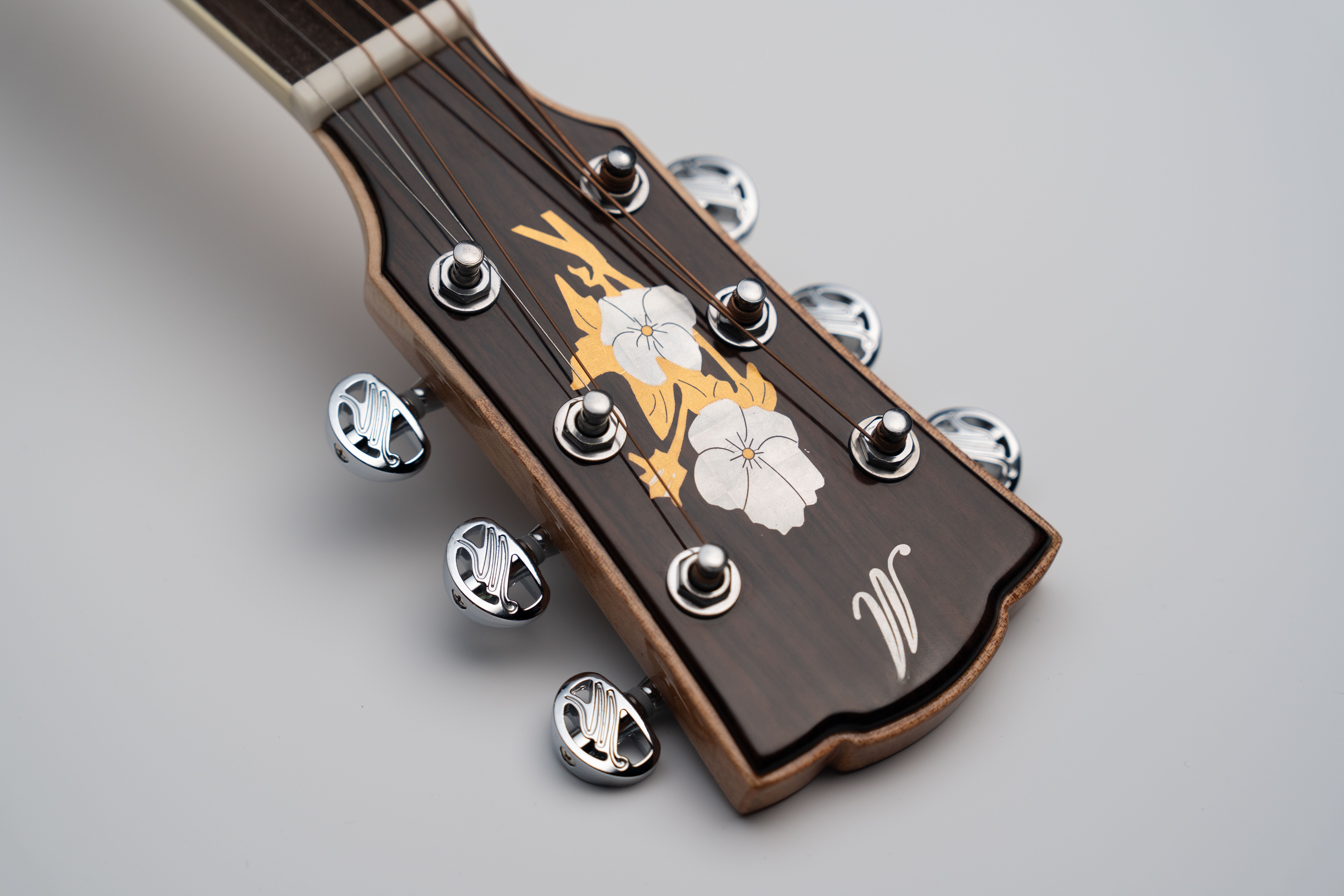 Гриф из клёна, оснащённый палисандровой накладкой, дополняет звучание яркостью и большим резонансом. Кастомное заглавие располагает литые хромированные колки, настраивающие гитару с точностью в 1:21. Удобные лады из нейзильбера и костяные порожки обеспечивают продолжительно комфортную игру.
