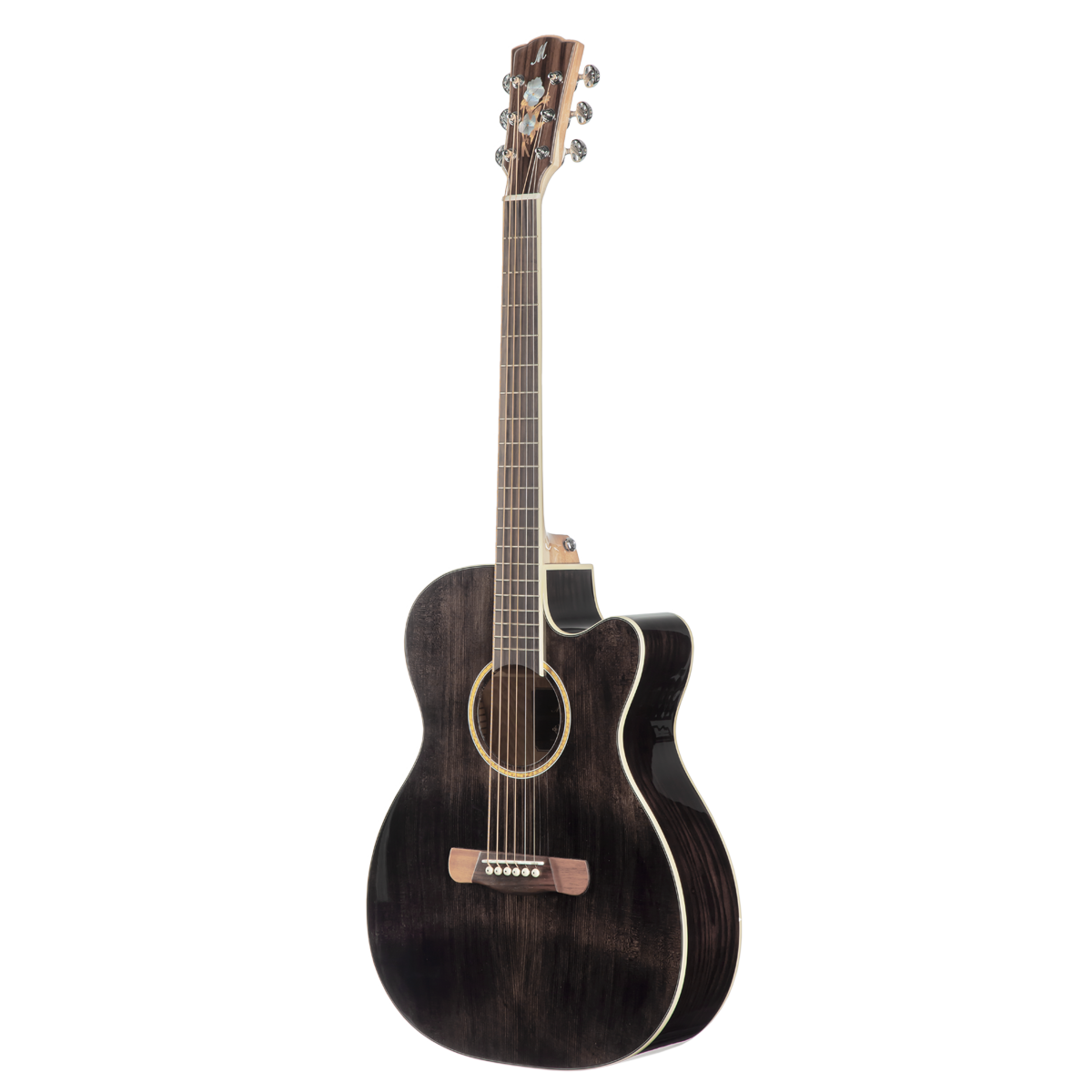 Форма корпуса гитары - усовершенствованный гранд аудиториум с вырезом. Его объёмный верх увеличивает частотный диапазон и улучшают резонанс инструмента. Верхняя дека из массива ели ААА+ класса, в сочетании с нижней декой и обечайками из ясеня, формирует звонкий сбалансированный звук.