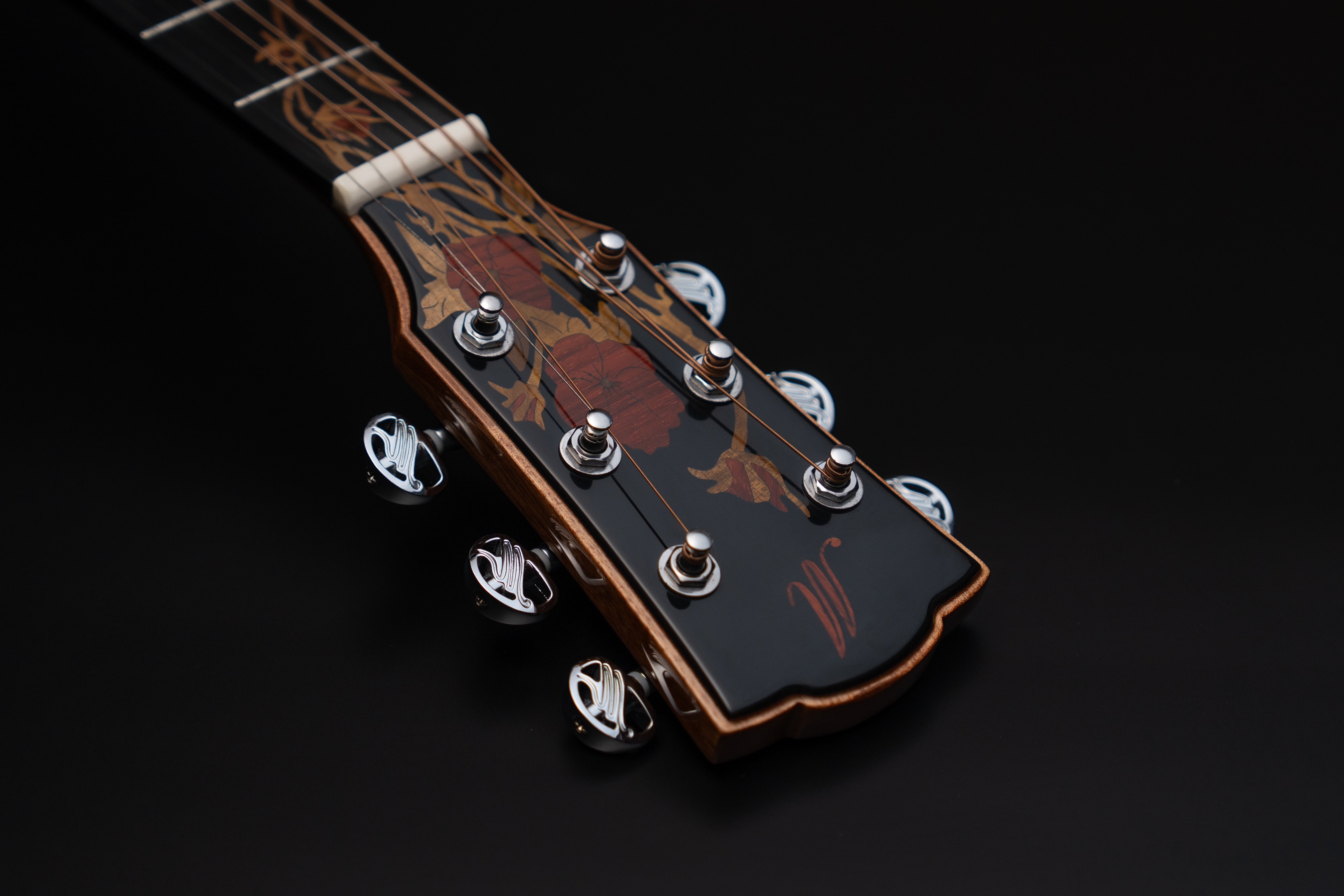 Всё в этой гитаре напоминает об осени. Её дизайн рисует перед музыкантами осенние лесные пейзажи, чьи золотисто-багряные деревья разделены усыпанными опавшими листьями тропами. Сочетание светло-карего корпуса с тёмным грифом дополнено эстетичными узорчатыми инкрустациями из разных пород дерева.