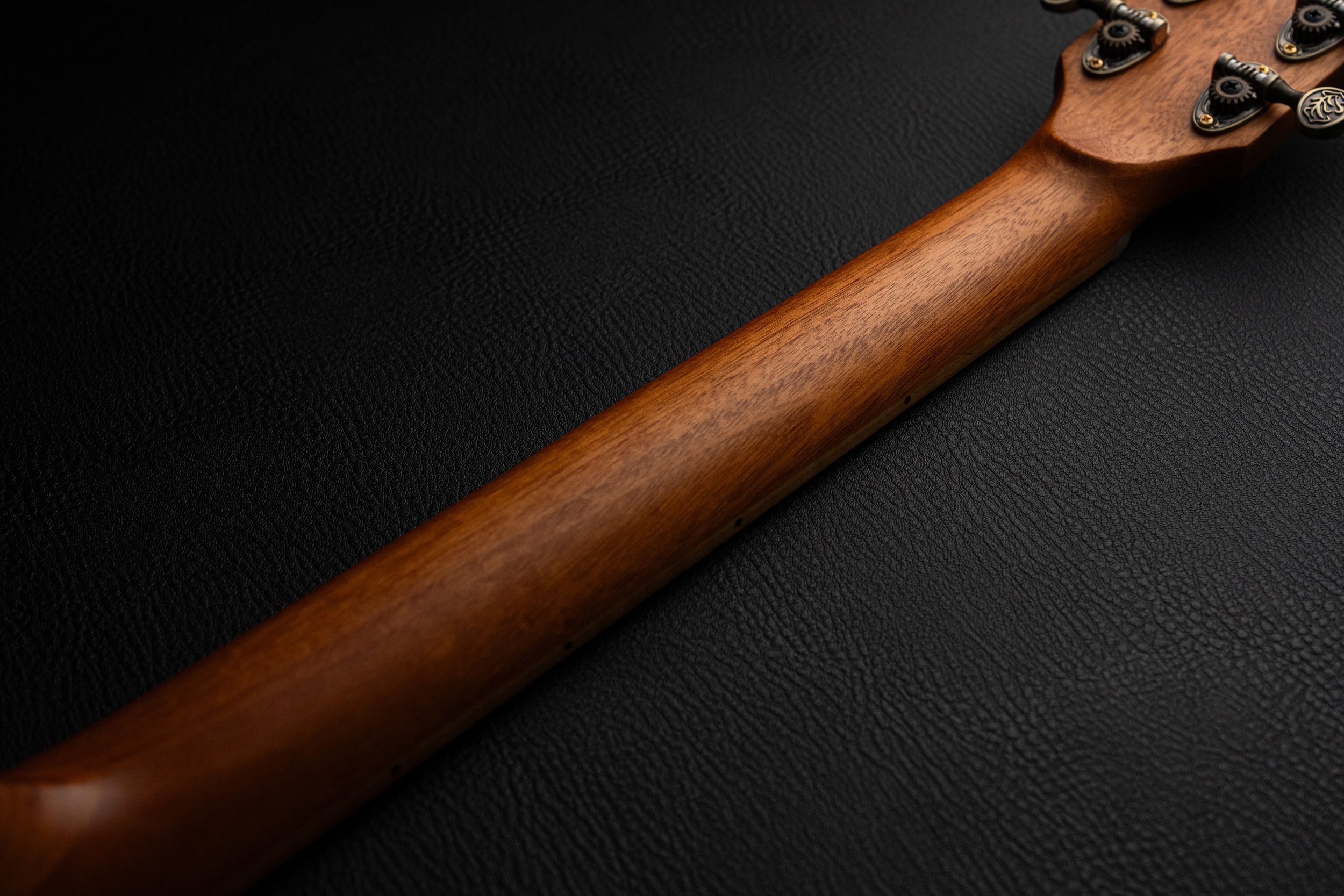 На гитару установлен крепкий гриф из махагони, дополняющий звук гитары длительным сустейном. Накладка и бридж выполнены из палисандра, отличающегося своей крепкостью и износостойкостью. Лады данной гитары сделаны из нейзельбера — материала, устойчивого к коррозиям и повреждениям. На пёстром заглавии грифа расположены винтажные колки с точностью 1:21.