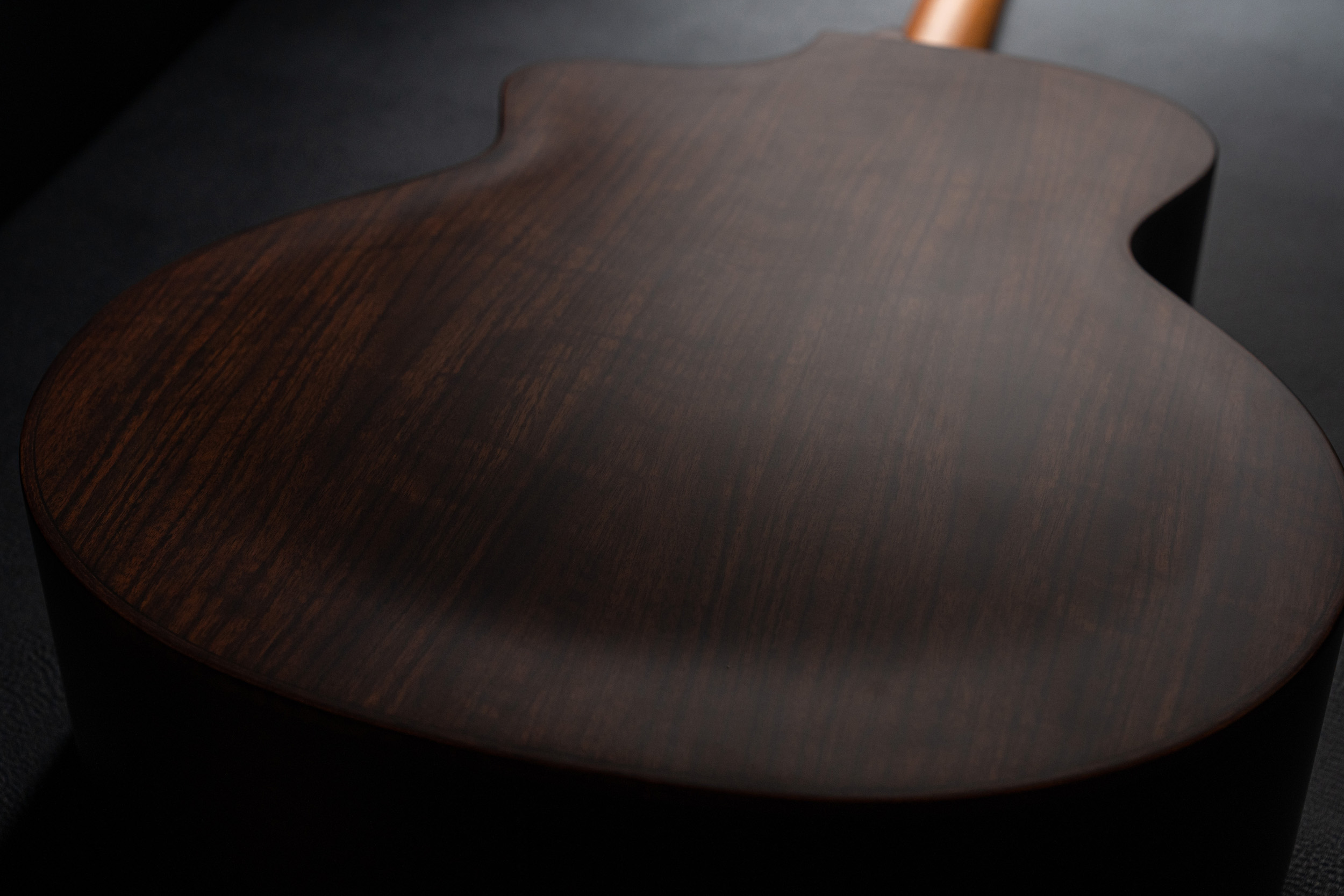 Верхняя дека гитары сделана из массива ели AAA+ класса, выдерживаемого от 5 лет до нескольких десятилетий. Она сочетается с ореховыми нижней декой и обечайкой, формирует сбалансированный, мощный, отзывчивый звук с широким частотным диапазоном и округлыми обертонами. Средние частоты отлично раскрываются благодаря корпусу гранд аудиториума с закруглённой нижней декой.
