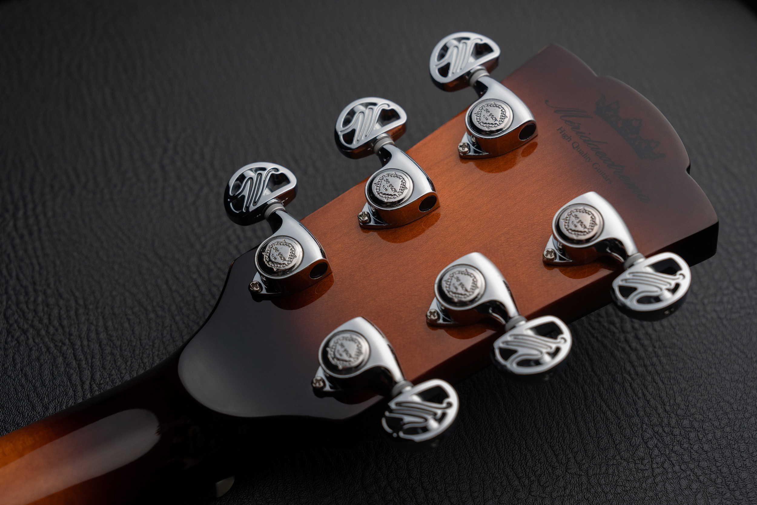 Крепкий гриф из клёна дополняет звучание гитары ярким резонансом и выраженными высокими частотами. Накладка и бридж из палисандра удобно прилегают к руке, материал крепкий и износостойкий. Кастомные хромированные колки Merida Extrema настраивают струны с точностью в 1:21.